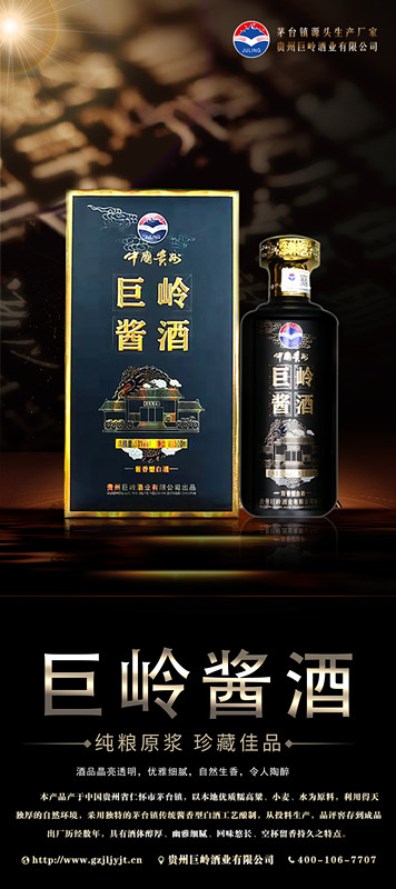 貴州巨嶺酒業有限公司,座落于聞名世界的古鎮,國酒之鄉“茅臺鎮”。與“國酒茅臺”共享得天獨厚的氣候、土壤、水源、以及微生物群等自然資源;《巨嶺酒業》老作坊前身“巨嶺燒坊”,經過多年的傳承,秉承先輩們代代相傳的古法釀造工藝,歷經幾代人的延續和釀酒發展,奠定了《巨嶺酒業》發展的堅實基礎。 作為貴州茅臺鎮本土規模企業,《巨嶺酒業》擁有傳統發酵窖池200余口,年產優質醬香白酒近2600多噸,儲酒能力12000多噸;并配有3條現代化包裝生產線;公司現有職工300多名,有釀酒師15人,技術人員22人,本科以上學歷管理人員12人,大專學歷工作人員78人,是茅臺古鎮醬酒傳承的白酒知名企業。 《巨嶺酒業》勵精圖治與精益求精的發展理念,已成長為行業認可、社會公認的“規模釀酒企業”,酒業協會副會長單位”和“愛心企業”。 公司現在擁有:《巨嶺醬酒》,《嶺臺》,《玉嶺燒坊》,《酒緣》《情滿壺》等上百個品牌產品,公司注重品牌發展,以《巨嶺醬酒》為品牌核心,以個性化定制和尊貴封藏為營銷模式,制定出“一核兩柱”的銷售模式。《巨嶺醬酒》作為品牌主體,做擴展市場的排頭先鋒,全國布局,點線結合,網狀布局,包括《巨嶺》系列產品.... |